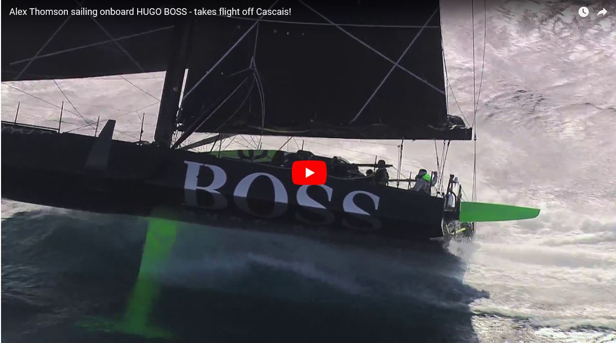 Alex Thomson onboard HUGO BOSS really sends it off the coast of Portugal, hitting a staggering 33.2 knots in rough seas.