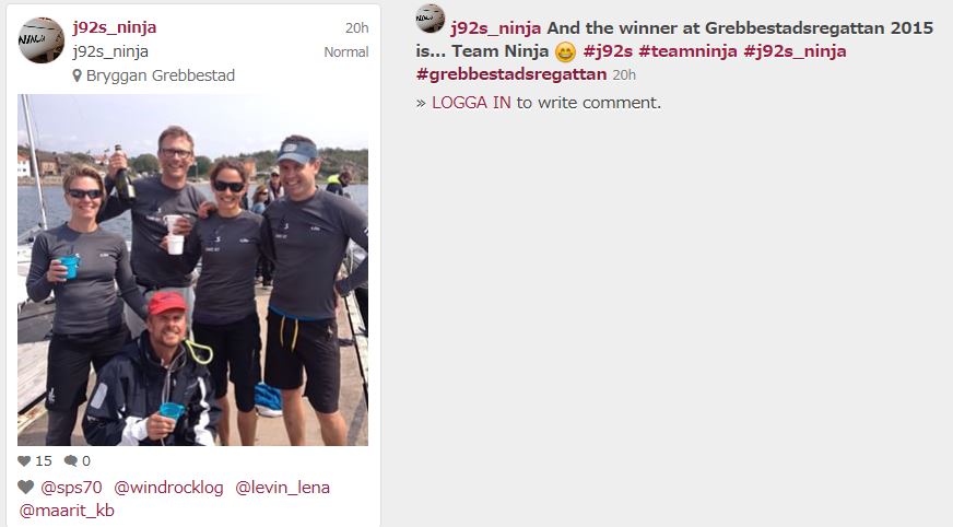 Grebbestadsregattan seglades på söndagen arrangerade av Bohusläns JK. Och via Instagram finner vi att Ödsmålsbåten Ninja med Amundin vid rodret vann 2015 års upplaga! Göran Johnsson i en CB66 Racer kom tvåa drygt två minuter efter segraren i mål. Mattias Ekvall var trea i mål med en Mannerberg 38. Gustav Gabinus kom fyra. Korrigerad tid Gustav blivit tvåa, men eftersom tiden inte drog över maximitiden för första båt i mål så blev resultaten som båtarna kom in i mål.