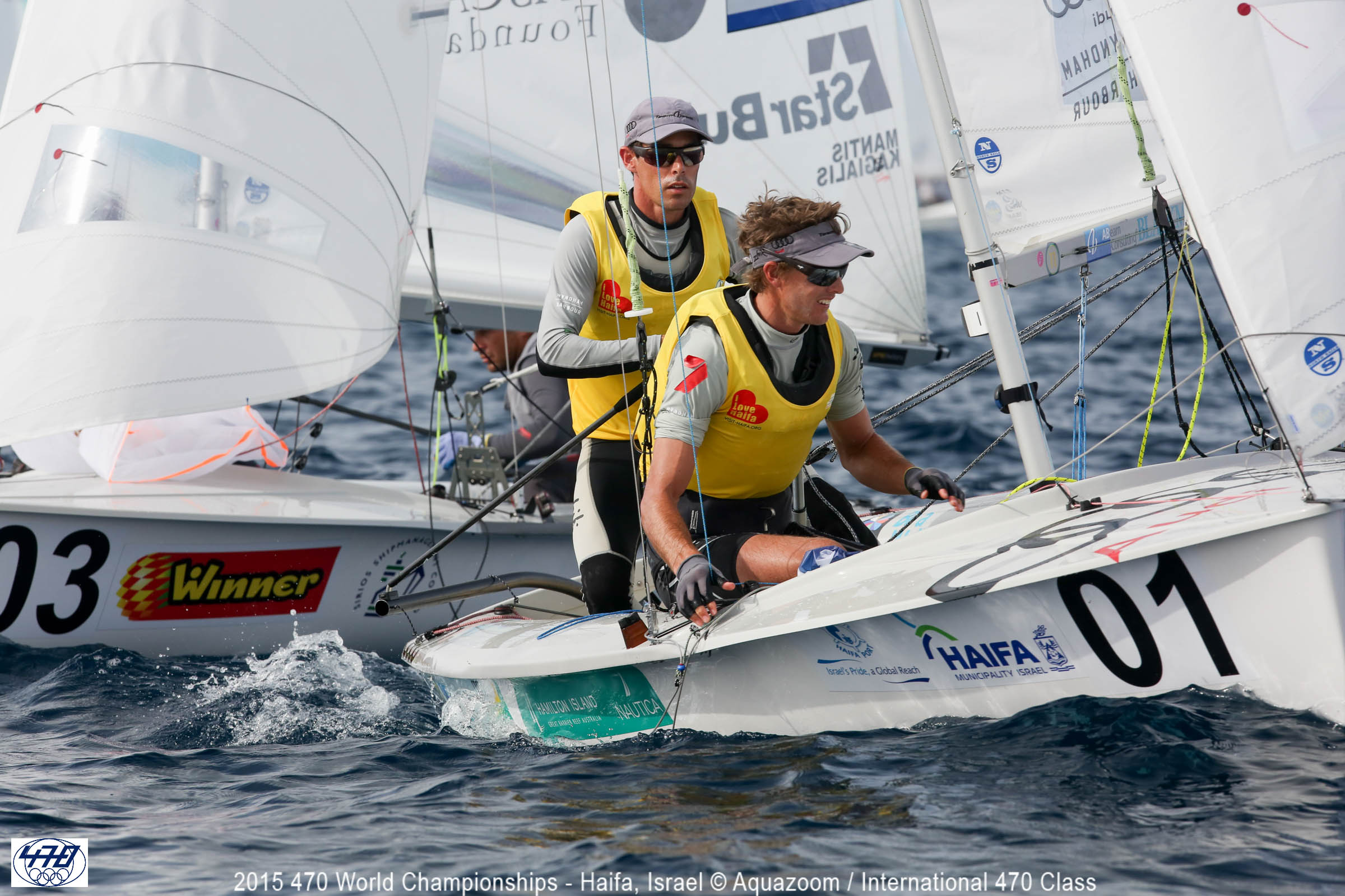 A lighter breeze filled in over the race course in Haifa Bay on day two of the 2015 470 World Championships, proving a challenge for the teams as the wind came down the race track in bands and patches.