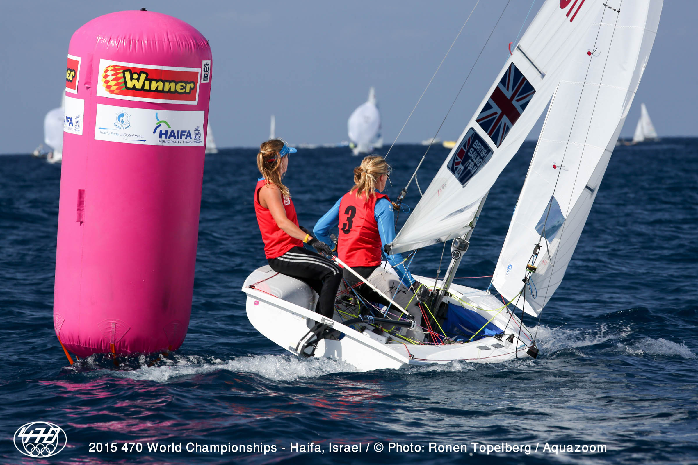 Making their mark in their second ever event in the 470 are local team Ido Bilik/Ofek Shalgi (ISR). The young pair, aged 15 and 16 years, won the under-17 division at the 2015 420 Junior Europeans in August, and switched to the 470 just a few weeks ago to take a shot at the 470 Worlds,and a fifth in race 9 will have boosted their confidence.