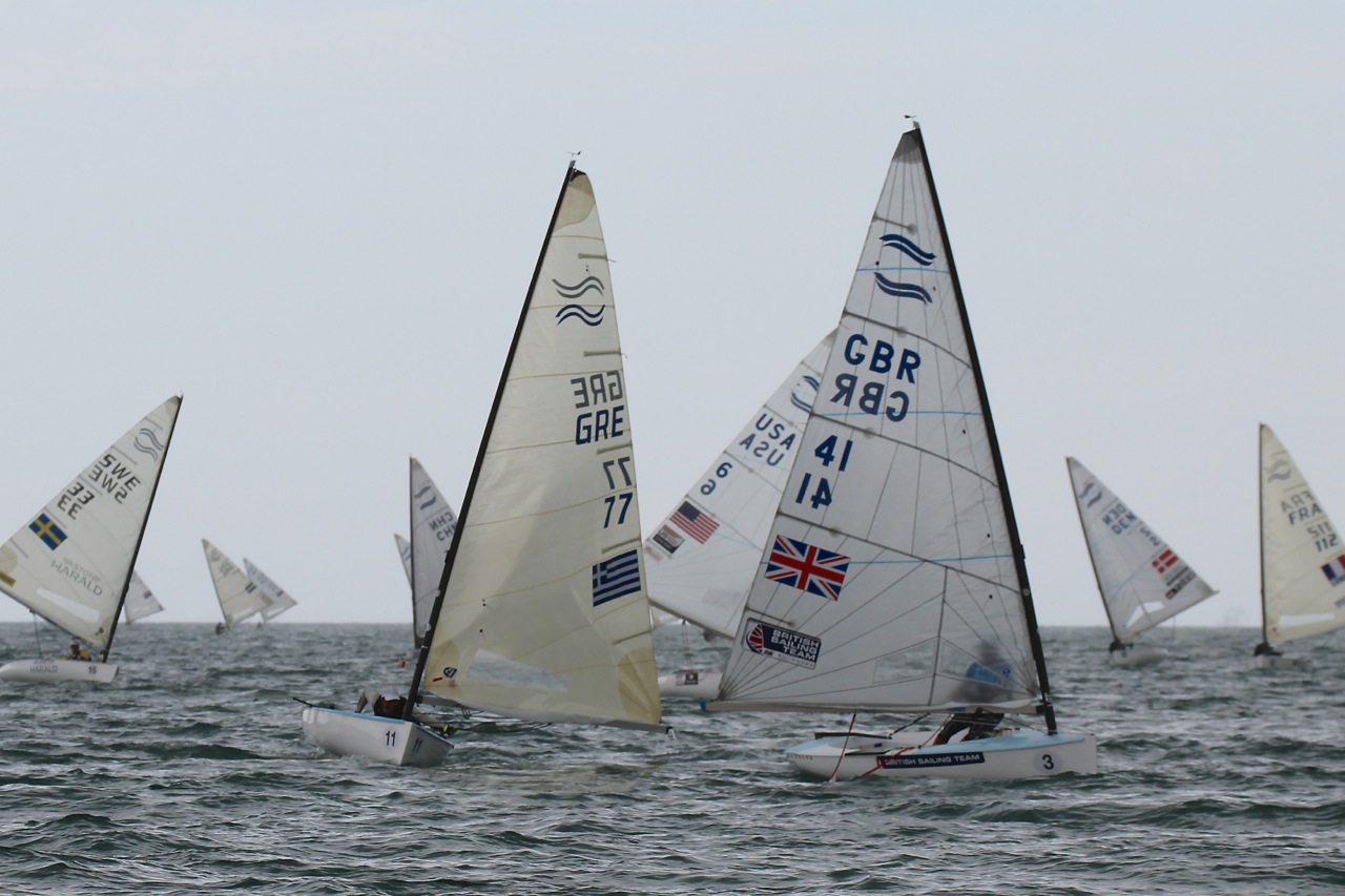 In his first Finn Gold Cup, André Hojen Christiansen (DEN) led round the top mark from the left, with Ioannis Mitakis (GRE), Alican Kaynar (TUR) and Philip Kasüske (GER) close behind. Mitakis took the lead on the first downwind to lead through the gate and extend up the second beat, rounding ahead of Kaynar and a fast approaching Scott.