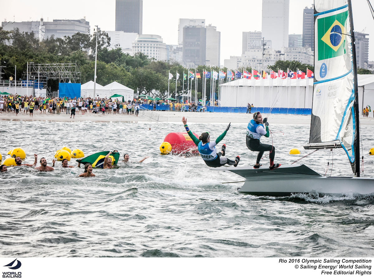 After five-time Olympic medallist Robert Scheidt just missed out on a sixth medal in the Laser, finishing an agonising fourth, it was critical that the Brazilian 49erFX team came away with something from the final race of Rio 2016. To come away with gold has sent their home nation into ecstasy. When Grael and Kunze won gold at the Olympic Test Event a year ago, the Brazilian media went wild. But one can only imagine how big this will go now that they have become Olympic Champions.