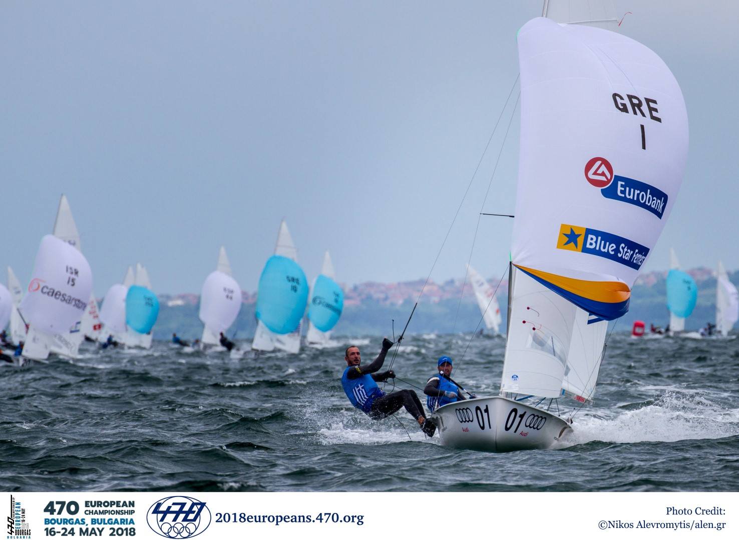 A spectacular race day 3 at the 2018 470 European Championships in Bourgas, Bulgaria featured a whole new game plan as teams responded to the breezy conditions.